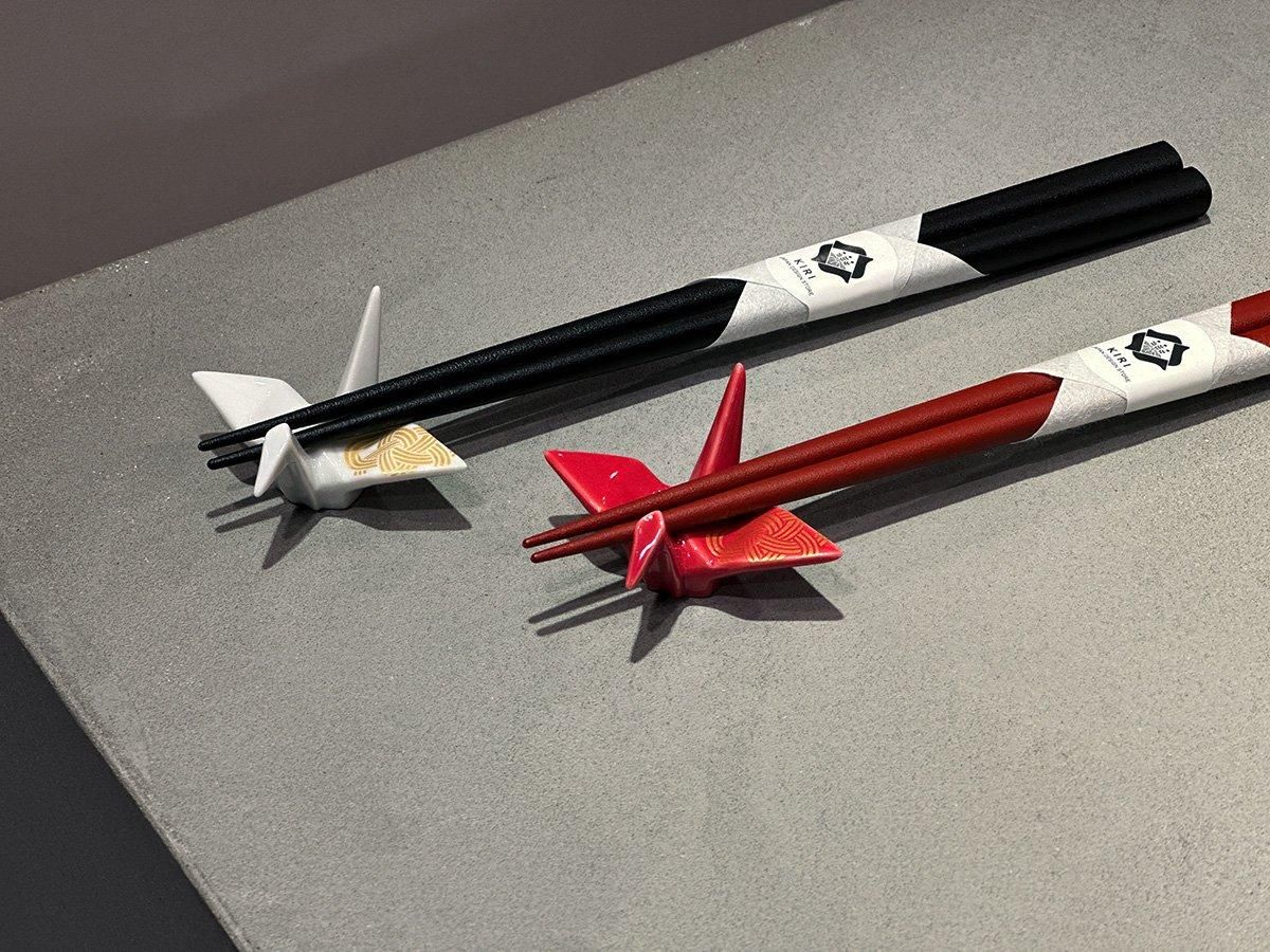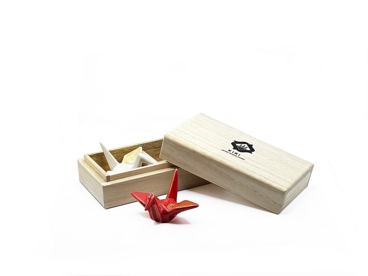 そんな鶴の優美な姿を、折り紙というモチーフを使いながら、美濃焼の箸置に仕立てました。