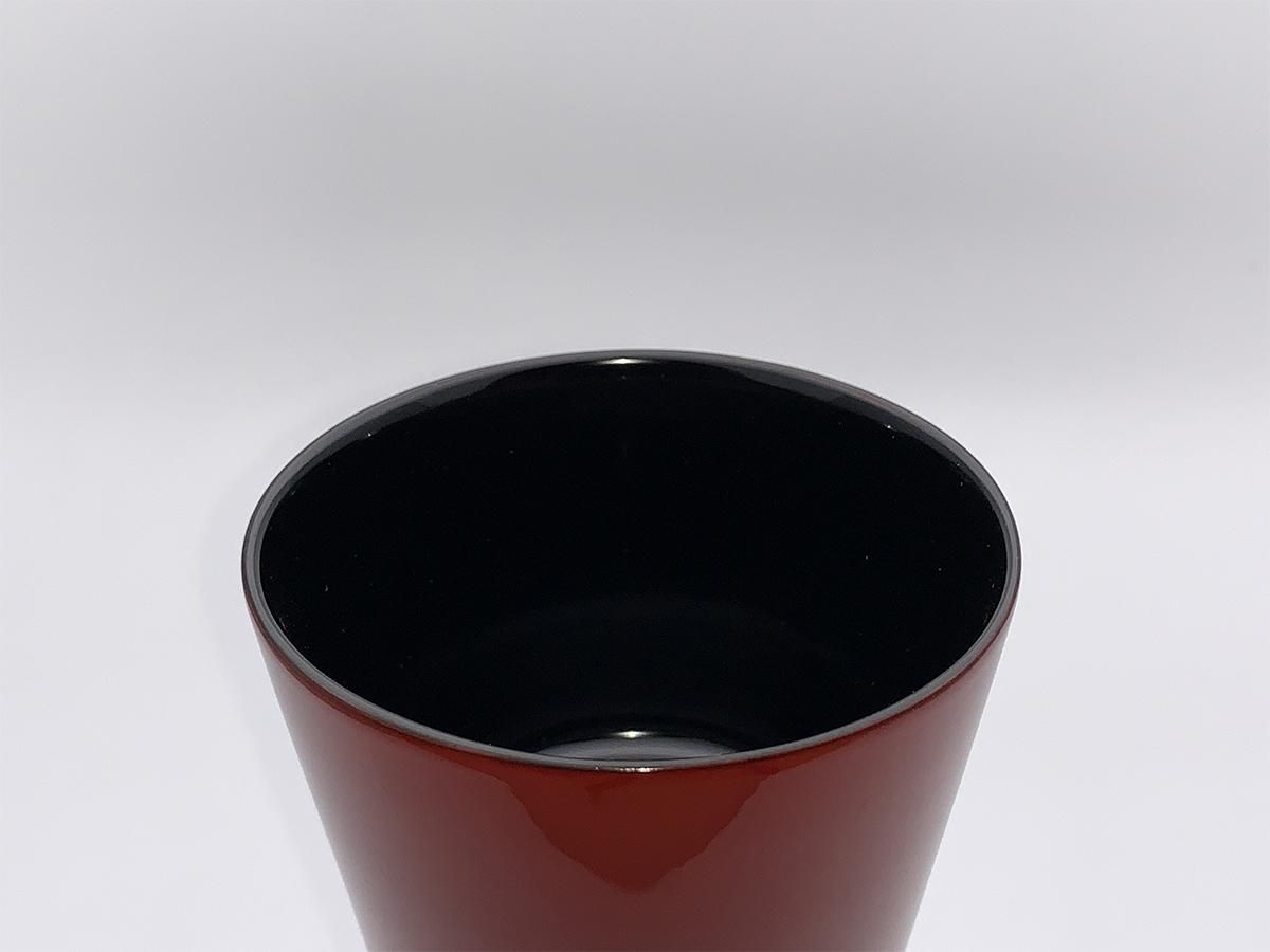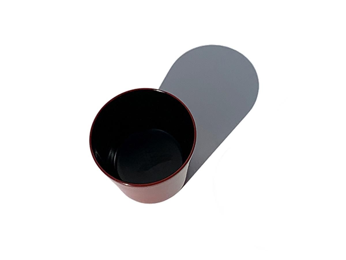赤色と黒色の対比が美しい器です。シンプルですが食品が映える美しさがあります。