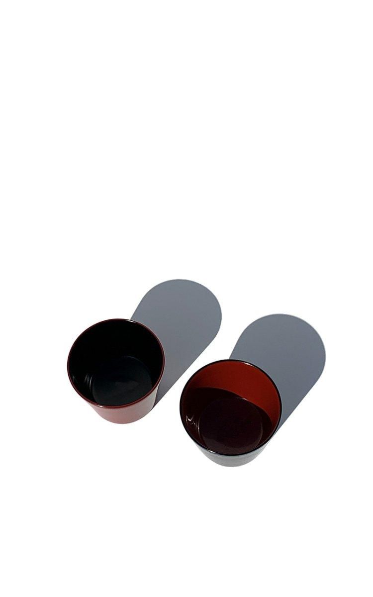 赤色と黒色の対比が美しい器です。シンプルですが食品が映える美しさがあります。
