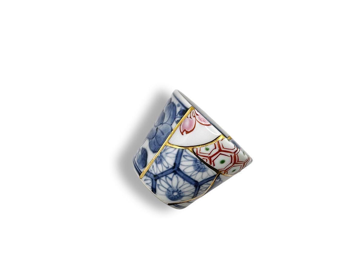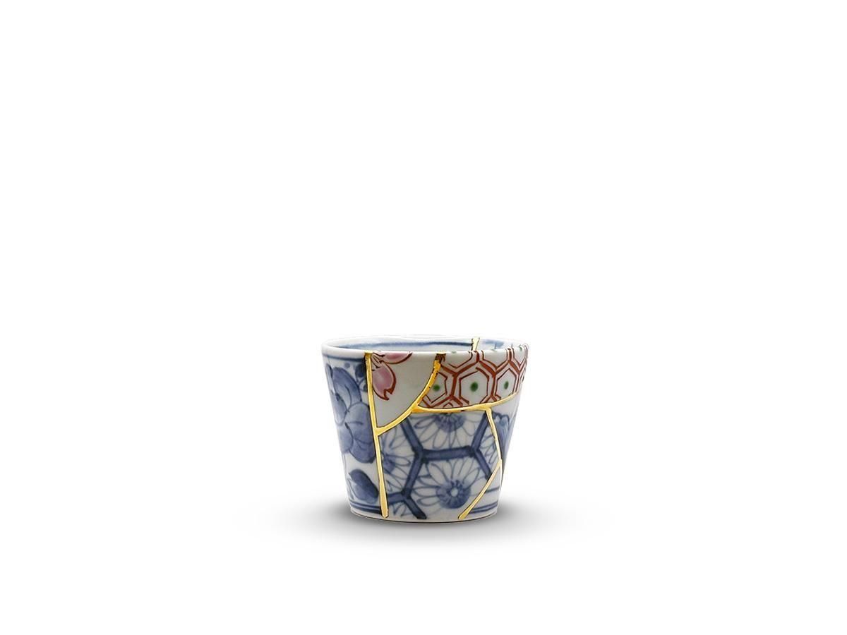 This is a Kintsugi-style NANAROKU. It is a combination of classical underglaze blue and red painting, crafted by an artisan who has spent many years painting at various manufacturers of Arita ware, Japan's most famous porcelain. His ability to be resourceful and specify patterns in detail is perfectly suited to the scale of KIRI's work.