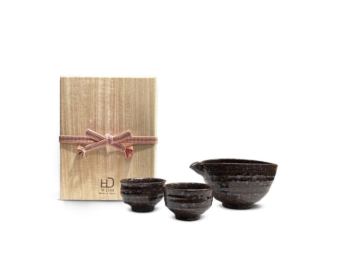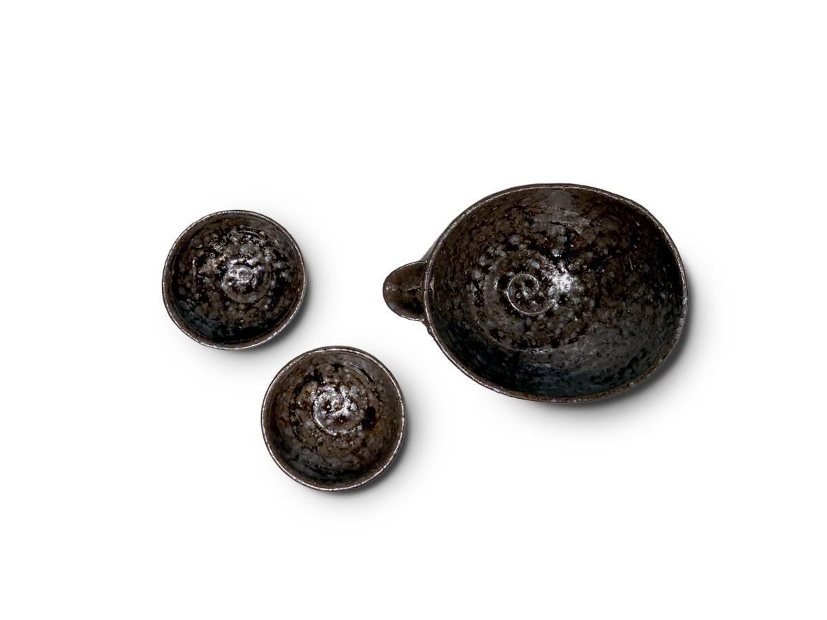Made in Koka, Shiga—home to Shigaraki, one of Japan’s Six Ancient Kilns—this wheel-thrown set uses coarse, lightweight clay that holds warmth and chill beautifully. Mineral speckles and deep glaze layers create a natural, tactile surface you’ll feel every time you pour.