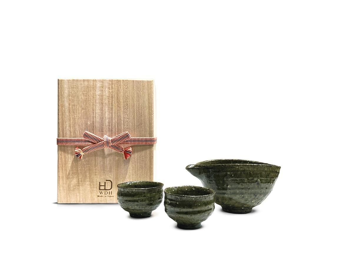 Made in Koka, Shiga—home to Shigaraki, one of Japan’s Six Ancient Kilns—this wheel-thrown set uses coarse, lightweight clay that holds warmth and chill beautifully. Mineral speckles and deep glaze layers create a natural, tactile surface you’ll feel every time you pour.